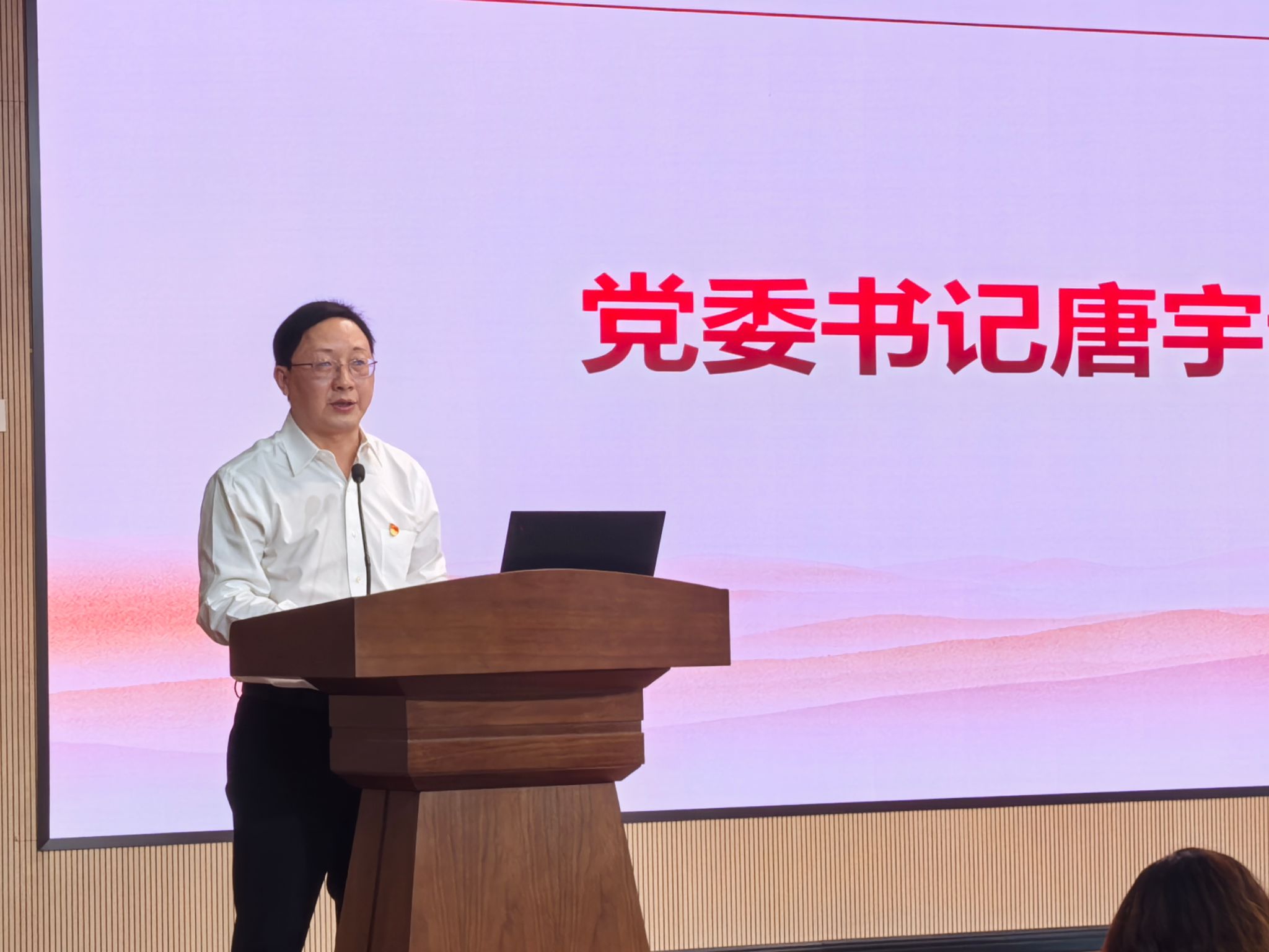 首先,学院党委书记唐宇讲话,他强调了学校召开第四次党代会的重要意义,并就此次代表选举工作提出要求:一要提高站位,以高度的政治责任感参加大会,顺利完成各项议程;二要严把标准,认真行使民主权利,确保党代会代表选举工作规范有序;三要严守纪律,坚决杜绝拉票、违规言行,营造风清气正的选举氛围。