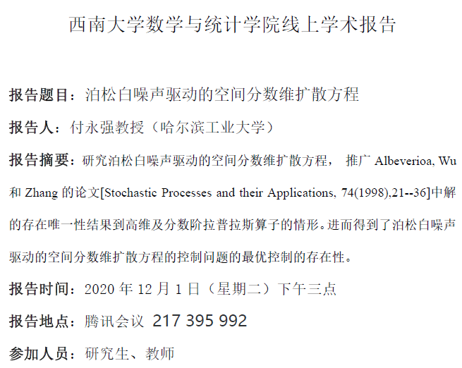 付永强教授学术报告-12月1日