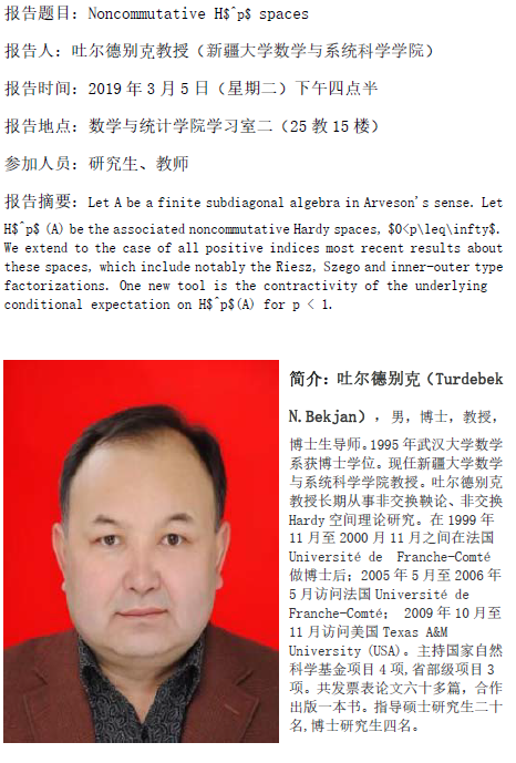 吐尔德别克教授学术报告-3月5日