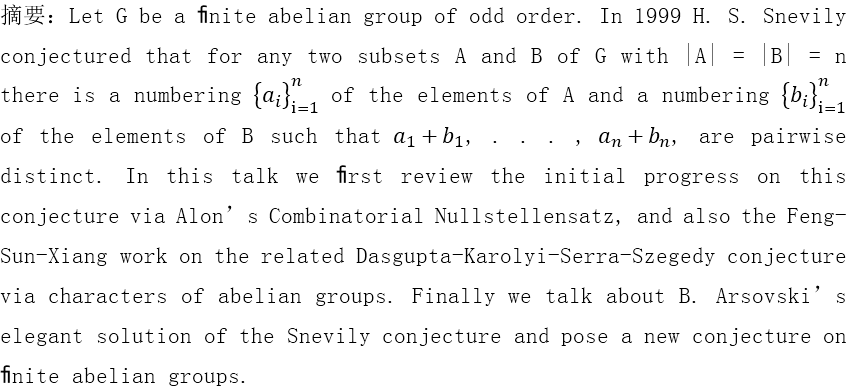 学术报告一:ON SNEVILY’S CONJECTURE AND RELATED TOPICS