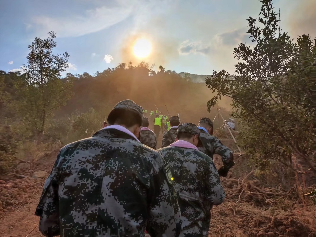 缪顺江同学和战友巡逻排查可能着火点