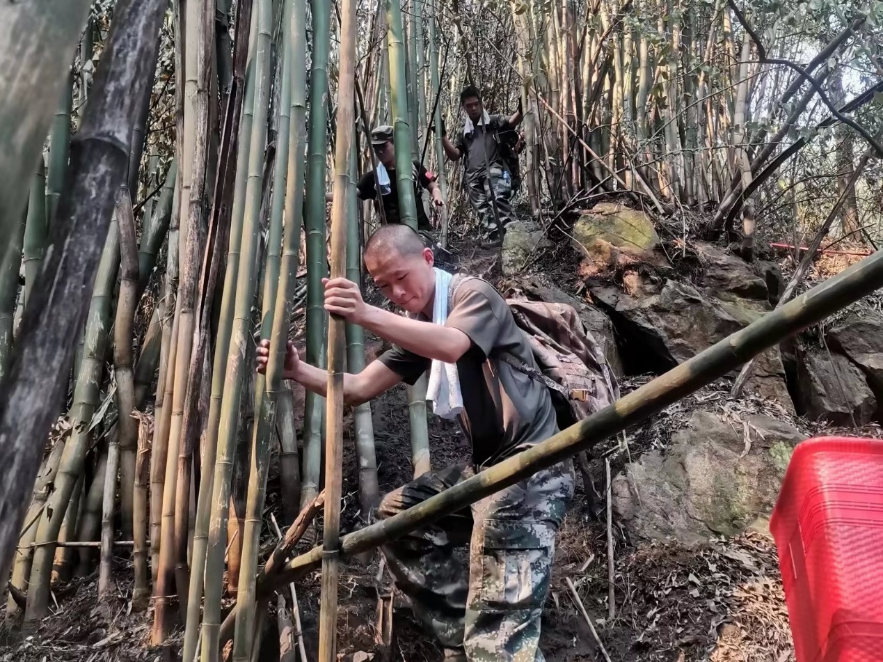在成为志愿者之前,缪顺江同学就曾在服役期间有过两次扑灭小规模山火的经历。他提到退伍军人会常说的一句话“退伍不褪色”,遇到问题党员和人民子弟兵理应冲锋在前,所以成为一名志愿者在缪顺江同学看来是理所应当的一件事。