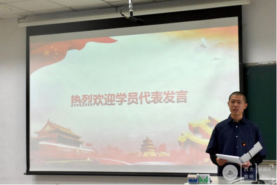随后,本次入党积极分子培训班学员、2021级本科生缪顺江进行发言。他首先感谢学院党委为大家提供了这次学习和交流的机会,并代表所有学员保证:积极参加党课学习,提高政治意识,强化党性原则;把政治追求和实际行动有机统一起来,以一名党员的标准严格要求自己,树立良好的形象;积极践行党为人民服务的宗旨勇于参与社会实践活动,在日常学习和生活中起到先锋模范作用;把个人利益与国家前途命运紧密联系起来,把对党和社会主义事业的无限热爱投入到中华民族伟大复兴的社会实践中去。