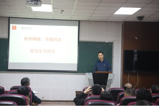 2021年10月15日下午,学院教工第一党支部、研究生第五党支部在25教14楼报告厅联合开展主题党日活动。学校党委副书记安春元、学院党委书记易遵尧出席,学院教工第一党支部、研究生第五党支部全体党员参加,教工第一党支部书记喻厚义主持本次党日活动。