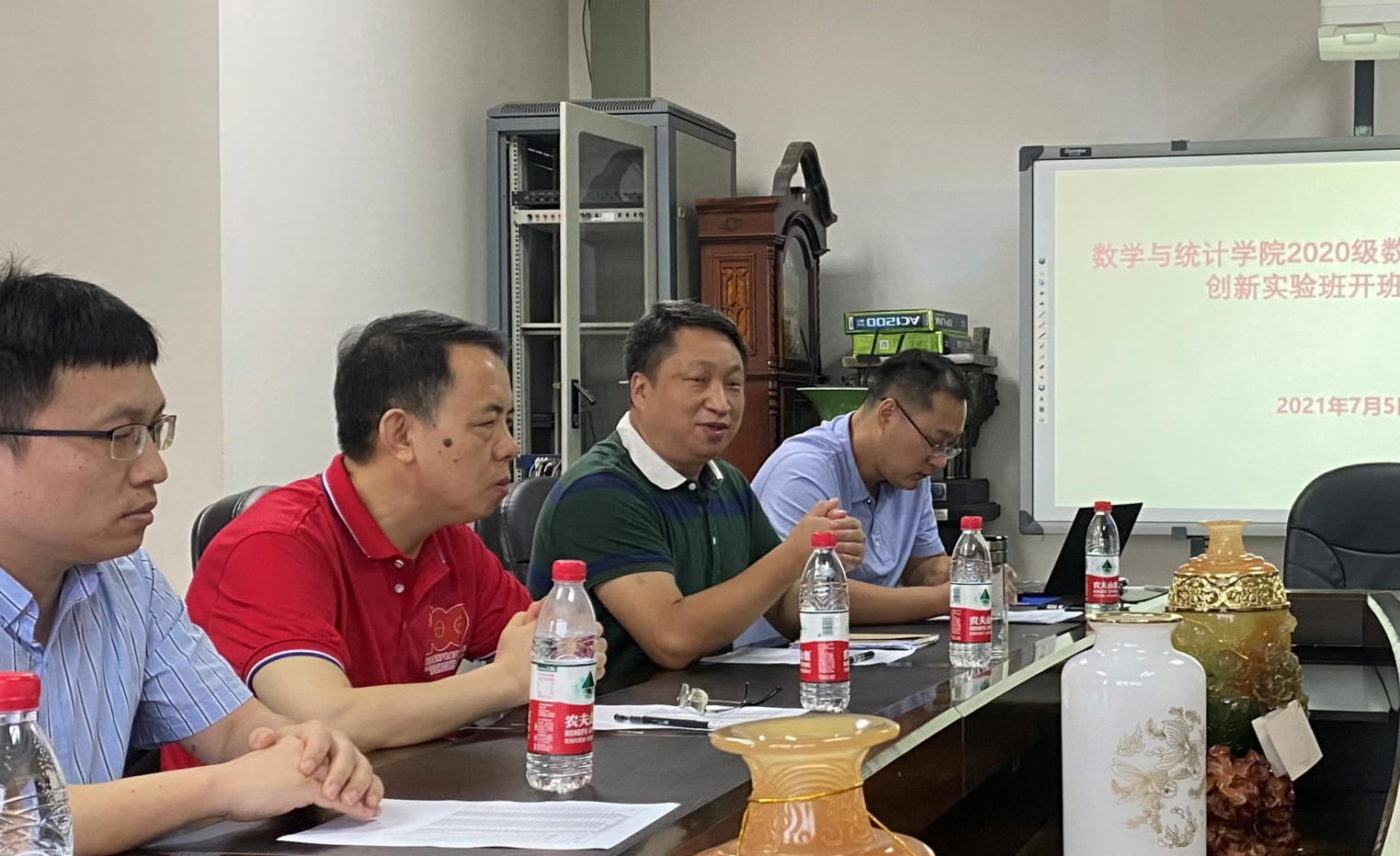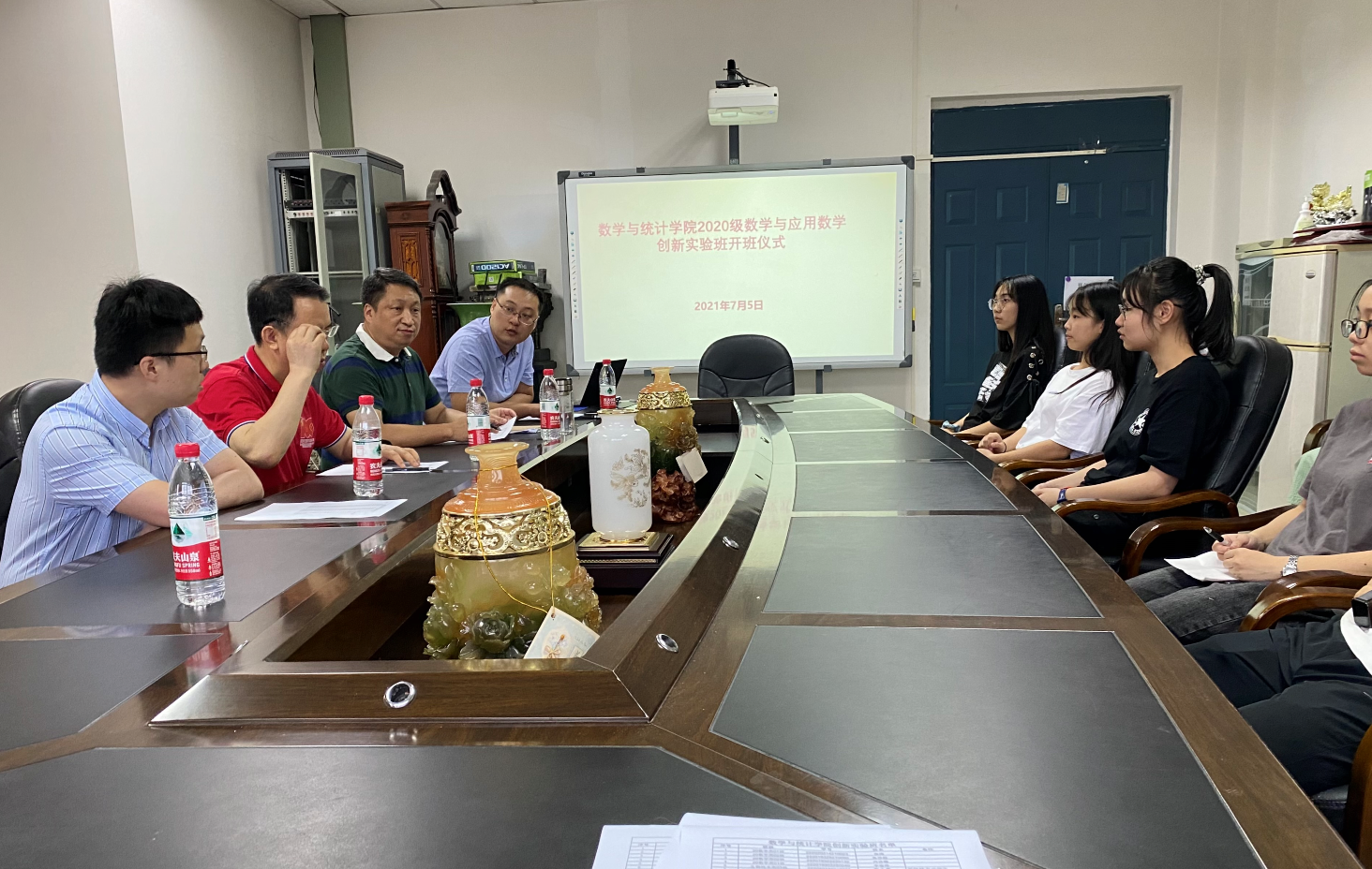 2021年7月5日上午8:00,pa视讯官方集团2021年数学与应用数学创新实验班开班仪式在学院1618会议室举行,学院党委书记易遵尧,院长刘贤宁,创新实验班班主任钟新,2020级本科生辅导员张珊以及创新实验班全体在校学生参加,教学副院长邓圣兵主持此次开班仪式。