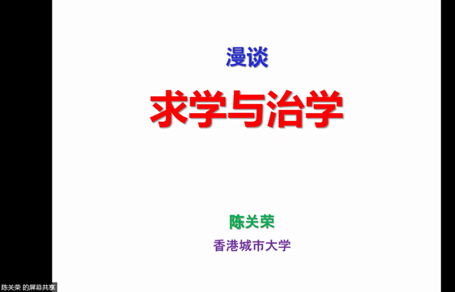 2020年9月24日下午,应西南大学科协、pa视讯官方集团邀请,欧洲科学院院士、发展中国家科学院院士、香港城市大学博士生导师陈关荣院士在腾讯会议上为我校师生做了《漫谈求学与治学》的学术报告。
