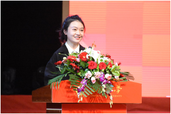 典礼在全体师生的国歌声中拉开帷幕。首先,高年级学生代表2018级本科生黄钰涵同学表达了对2020级新生的欢迎,并从学习、生活、工作等多方面向2020级新生分享经验,寄语新生“绽放青春风采”,表达了她对新生美好的祝愿。