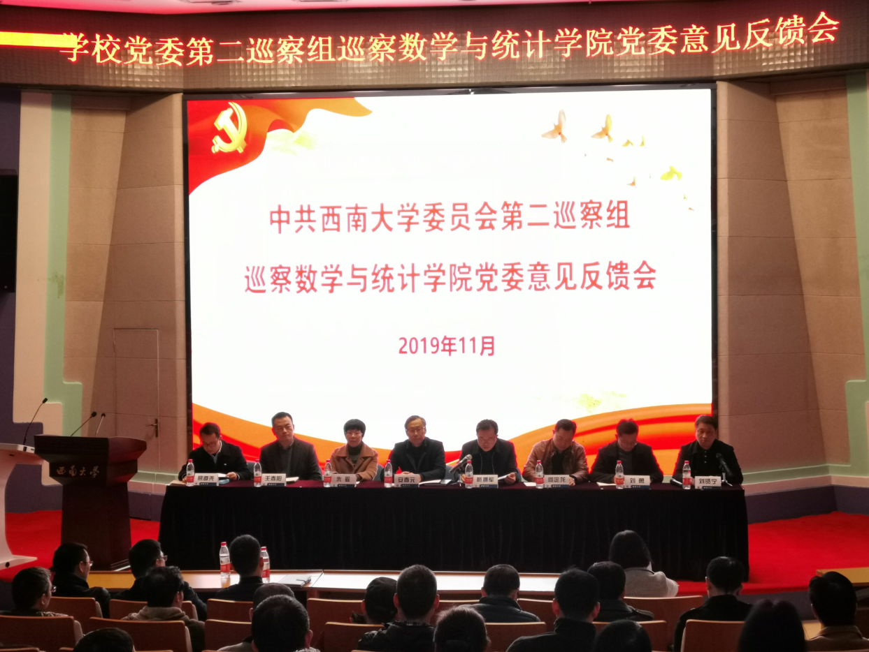 为贯彻落实中央和教育部党组全面从严治党要求,严肃党内政治生活,净化党内政治生态,牢记政治使命,强化政治担当,推动全面从严治党向基层延伸、向纵深发展,通过为期一个月的巡察,2019年11月27日下午,中共西南大学委员会第二巡察组巡察pa视讯官方集团党委意见反馈会在25教一楼报告厅召开。