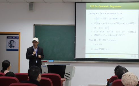 论坛会上,中国人民大学统计与大数据研究院朱利平教授进行了题为“Penalized Interaction Estimation for Ultrahigh Dimensional Quadratic Regression”的主题报告,并且分享了他的最新研究成果。