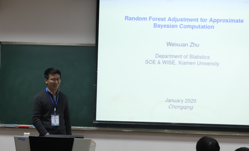 最后,厦门大学王亚南经济研究院朱蔚宣助理教授进行了题为“Random Forest Adjustment for Approximate Bayesian Computation”的主题报告,展示了目前所做的研究成果。