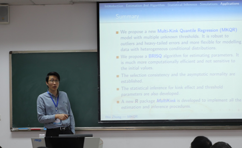 厦门大学王亚南经济研究院钟威教授作了题为“Estimation and Inference for Multi-Kink Quantile Regression”,对该研究成果进行了详细的介绍和分析,并且与大家进行了相关的交流和探讨。