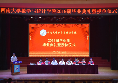 2019年6月21日下午三点,pa视讯官方集团2019届毕业生毕业典礼暨授位仪式在西南大学光大礼堂顺利举行。学院党委书记易遵尧同志,院长、学术委员会主席刘贤宁教授,副院长商彦英副教授,副院长邓圣兵教授,学院李扬荣教授,彭作祥教授,包海波教授,周军教授,部分研究生导师、任课教师、全体辅导员以及2019届全体毕业研究生、本科生,部分毕业生家长参与。学院党委副书记罗利江同志主持典礼。