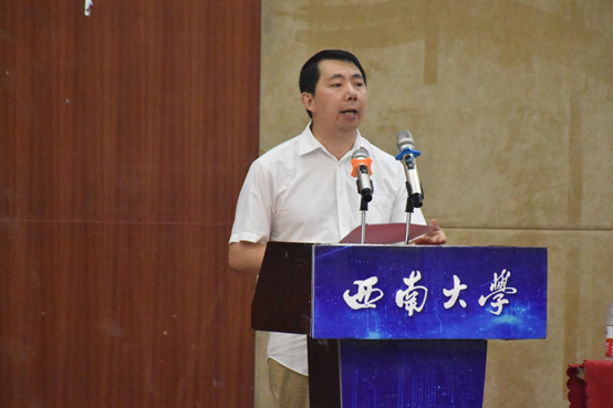 作为教师代表,李忠如副教授在会上为同学们送上了自己的祝福。他从忆往昔、看今朝、展未来三个方面出发,带领同学们回顾了自己的大学生活,也表达了老师们对学子的深切嘱托。“学好了数学,未来还能有什么能打垮我们呢?”李老师叮嘱学子,走出西大的校门、踏上社会,要好好思考自己的价值,不要忘记理性思维和独立思考,要爱自己所爱、行自己所行,无问西东;他鼓励同学们,人生不止眼前的苟且,要从学校、老师、朋友那里获得自己的诗和远方;pa视讯官方集团给大家留下的,不仅仅是学问,更是各种资源,校友资源、学术资源、平台资源,数统院也将永远是毕业生们依靠的港湾。