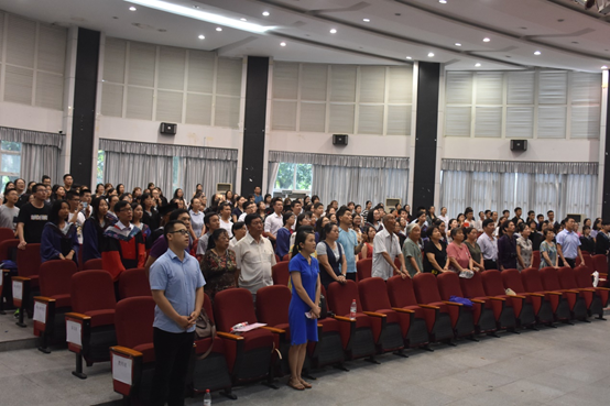 2018年6月25日下午,pa视讯官方集团在圆顶一楼报告厅举行了2018届毕业生典礼暨授位仪式。院党委书记易遵尧,院长唐春雷,副院长王建军、商彦英,以及学院李扬荣教授、彭作祥教授、包海波教授、邓圣兵教授、徐伟华教授、李忠如副教授等出席, 2018届毕业的全体本科、研究生毕业生参加。典礼由院党委副书记罗利江主持。