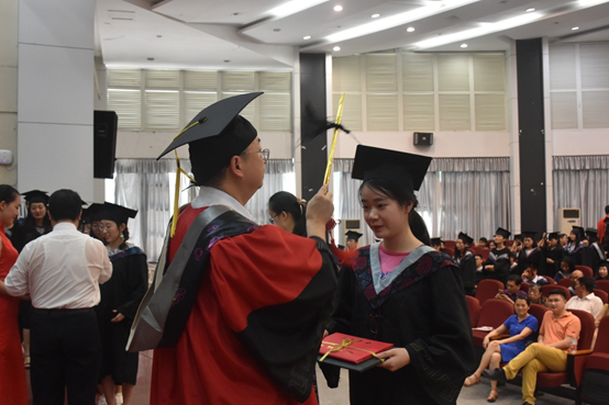 首先进行的是毕业生授位仪式。易遵尧书记宣读学校关于准予2018届本科、研究生毕业的文件;王建军副院长宣读学校关于2018届本科、研究生授位相关文件及毕业生名单。随后易遵尧书记为我院博士毕业生 9人、硕士毕业生 80人、本科毕业生 309人颁发毕业证书,唐春雷院长为毕业生们授位。