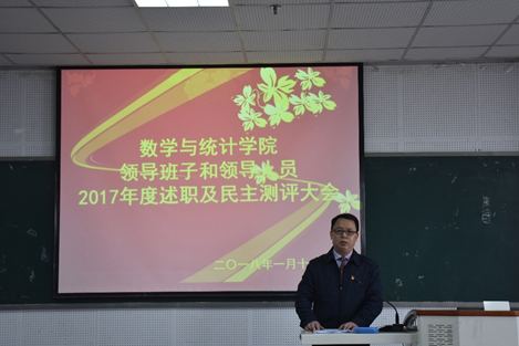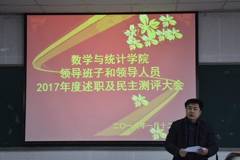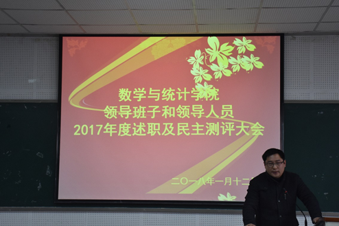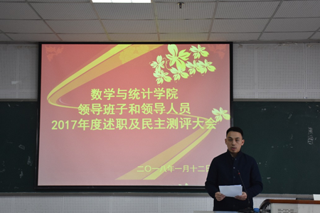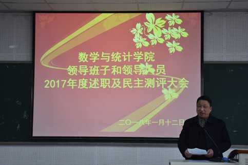 为加强中层领导班子建设和干部队伍管理监督,按照学校《关于做好中层领导班子和领导人员2017年度考核工作的通知》等有关要求,2018年1月12日下午,pa视讯官方集团在25教14楼学术报告厅召开全体教职工大会,总结2017年工作,对领导班子和领导人员进行年度考核。教职工听取了学院领导班子年度工作总结和领导人员个人述职报告,并就学院及领导干部一年来的工作情况进行了民主测评。会议由党委书记易遵尧主持。