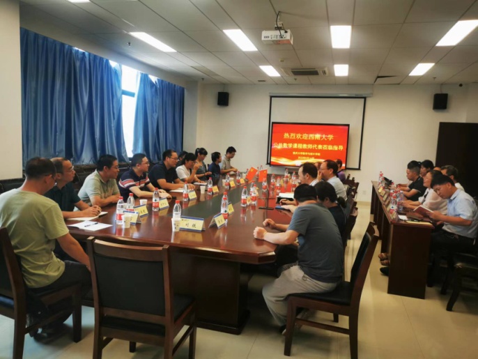 14日下午,邓圣兵副院长带队就公共数学教学改革问题继续开展专项调研。学院公共数学教研室教师代表11人参与了此次调研交流。会上,双方各自介绍了学校公共数学课程情况,重庆大学段正敏教授、荣腾中教授分别就《线性代数》线上MOOC课程建设和《概率统计》课程思政教学案例设计建设进行了经验分享,双方就公共数学教学如何更好传递知识情感交流等问题开展了热烈的讨论,并达成长期合作意向。