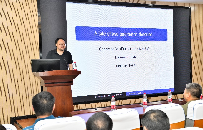 19日上午,许晨阳教授在数学楼103报告厅作了题为“A tale of two geometry theories”的学术报告。报告会由学院常务副院长刘贤宁教授主持,学院师生代表120余人参加报告会。许晨阳教授首先从复几何和代数几何的共同源头椭圆曲线入手,详细讲述了Kähler-Einstein度量的存在性和极小模型纲领从各自独立发展到相互交叉融合的历史脉络,介绍了K-稳定性的刻画和其模空间的构造等当今数学家们关心的前沿核心问题。在此基础上,许晨阳教授介绍了他与合作者最近关于K-稳定性与一致K-稳定性的等价、K-(半)稳定Fano簇具有一个好的模空间等杰出工作。