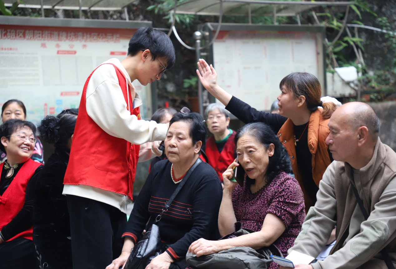 (志愿者与社区老人积极互动)