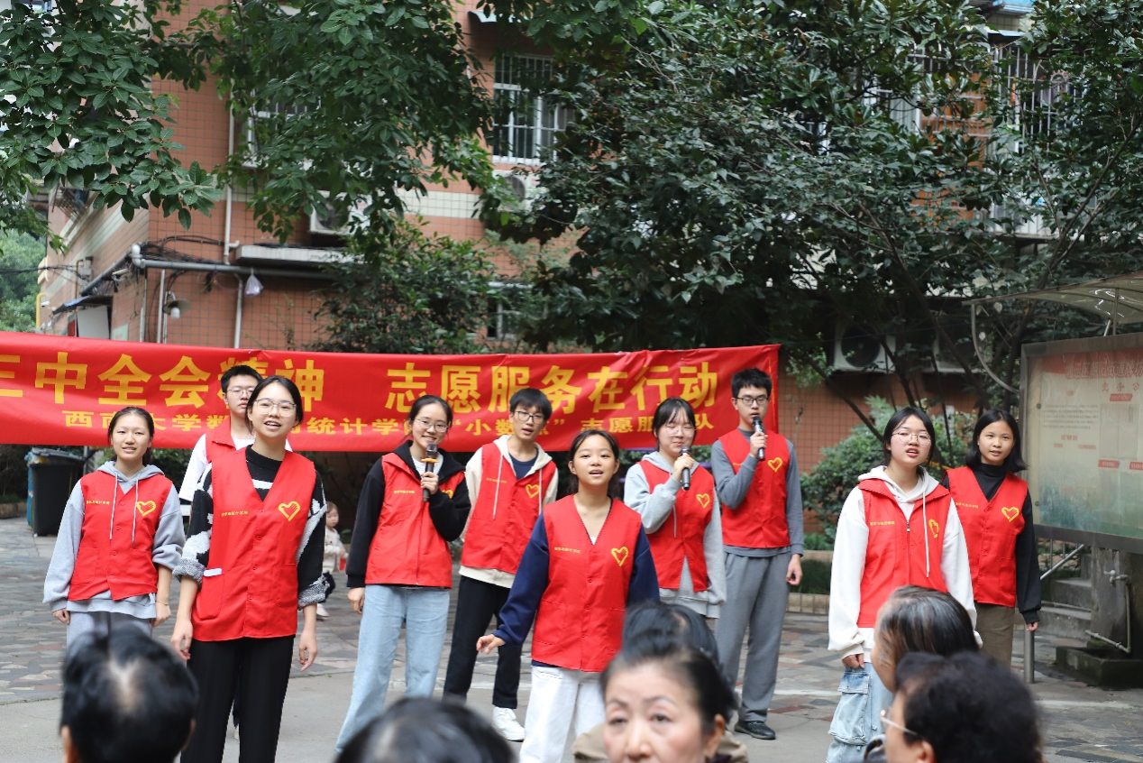 此次牌坊湾社区的活动,不仅为老年群体送去了温暖,也极大地提升了数统院青年服务社会的能力。党的二十届三中全会精神和志愿精神如同蒲公英的种子,随风传播到每一个角落,最终在全社会形成尊老爱老的良好氛围,为实现“老有所养”的理想社会贡献力量。