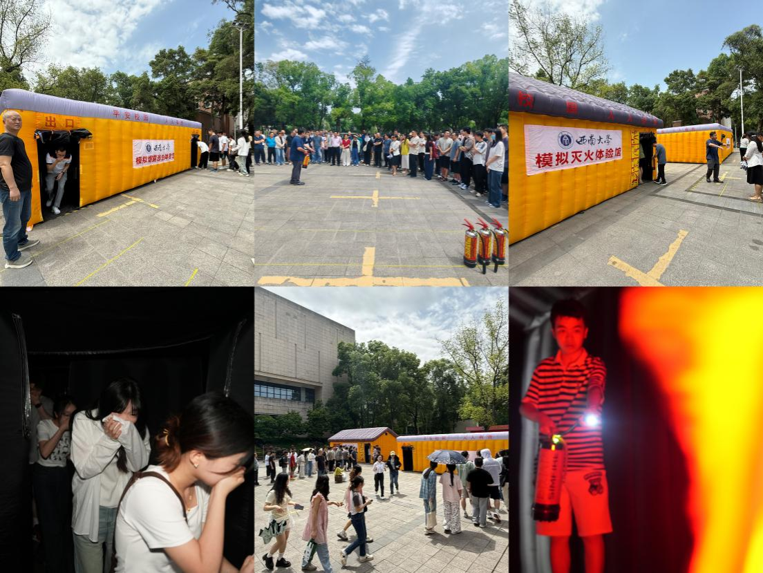 在第17个全国防灾减灾日前夕,为强化校园安全防线,提升师生应急处置能力,2025 年 5 月 9 日下午14 时,pa视讯官方集团 100 余名师生在光大礼堂旁的模拟烟雾逃生体验馆和模拟灭火体验馆内,开展了一场极具实战性的消防应急演练,本次演练由学校保卫处消防培训师担任总指挥。